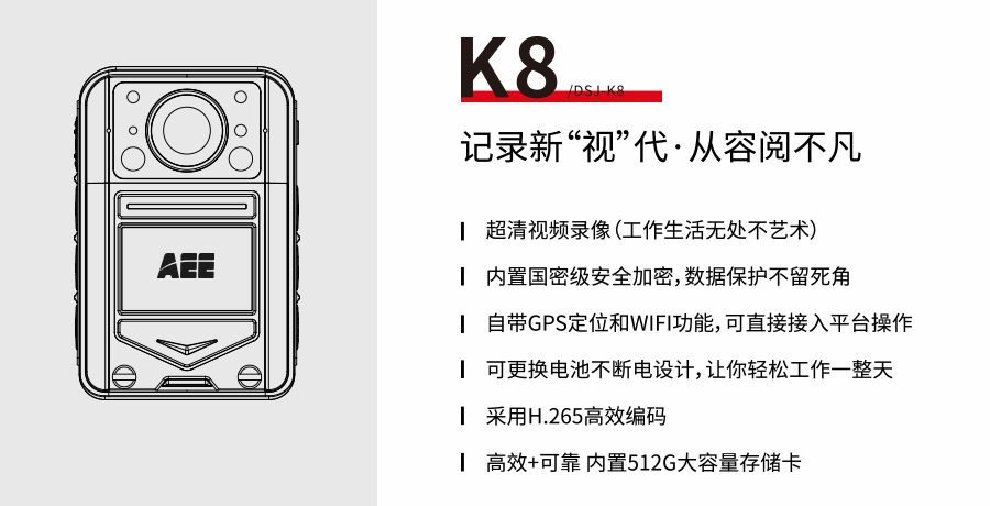 結束語:4K超清視頻錄像是一場正在發生的重大變革,相信AEE將憑借此技術重新引領行業的變革,為用戶帶來超乎期待的攝錄工作體驗;也相信AEE 執法記錄儀鋒派系列產品解決用戶痛點,讓用戶放心購買、安心使用、愉悅體驗,不斷拓展工作的邊界,使工作成為你的愛好!
